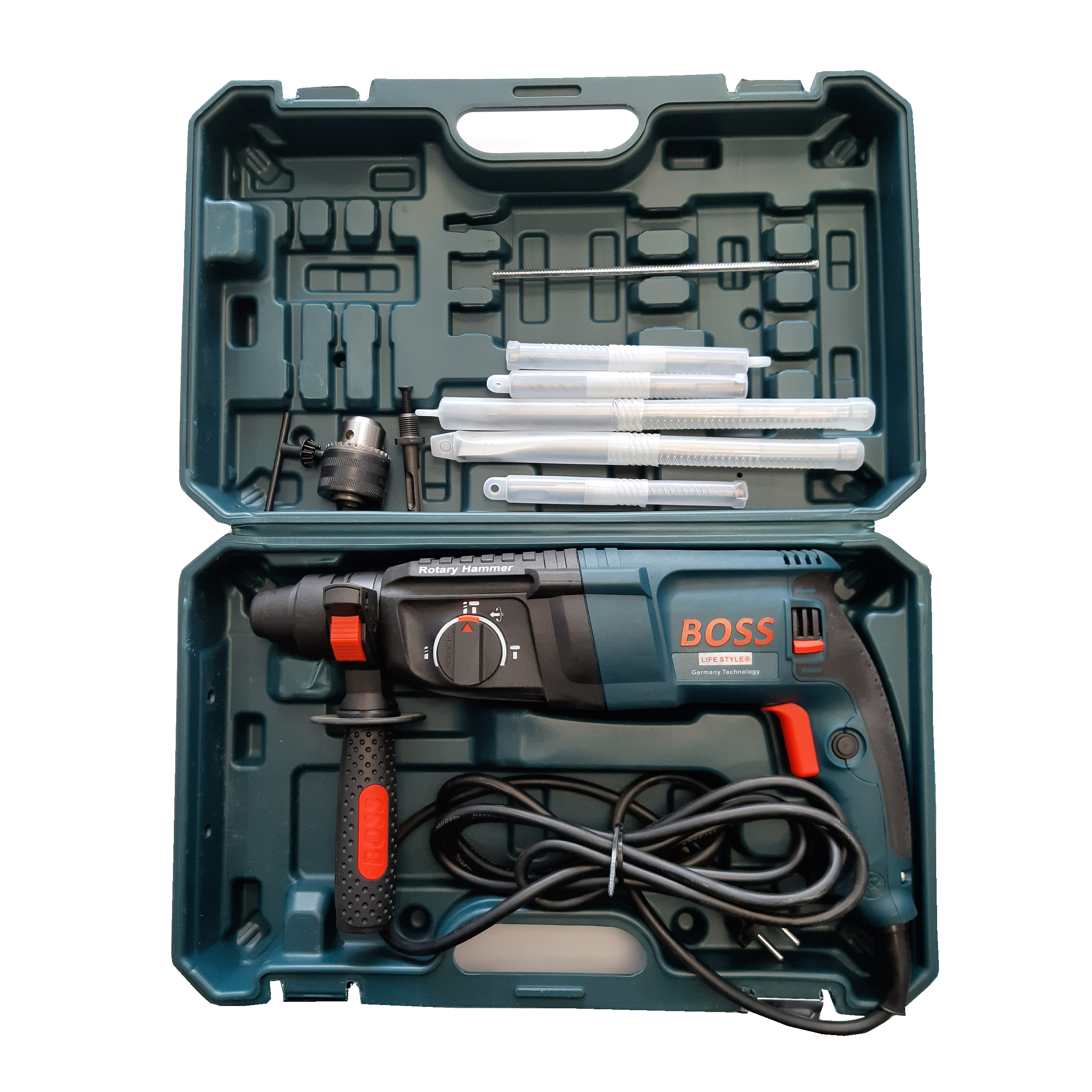 این مدل دریل بتن کن شامل چهار شیار برای نصب متههای مختلف است. همچنین دارای نظامهای اضافی از جمله دسته، کیف، مته، دفترچه راهنما و قلم است که این لوازم جانبی امکان استفاده راحت و موثرتر از این دریل را فراهم میکنند. این دریل بتن کن دارای سرعت حرکت آزاد 100 دور در دقیقه است. این سرعت بالا به کاربر اجازه میدهد تا به راحتی و با دقت بالا در سطوح مختلف بتن حفر و کندن کند.